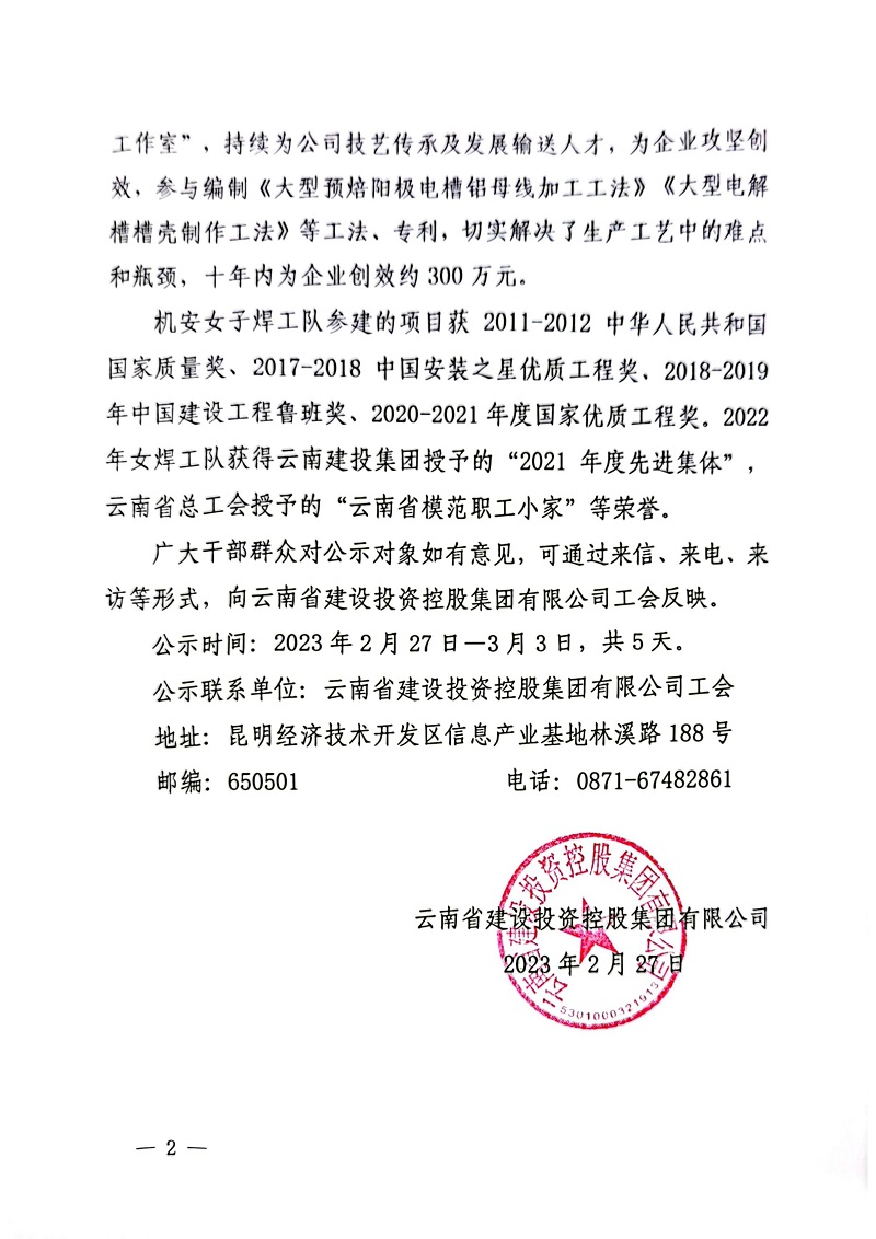 世界杯官网合作平台控股集团有限公司关于推荐全国五一劳动奖章候选人的公示
