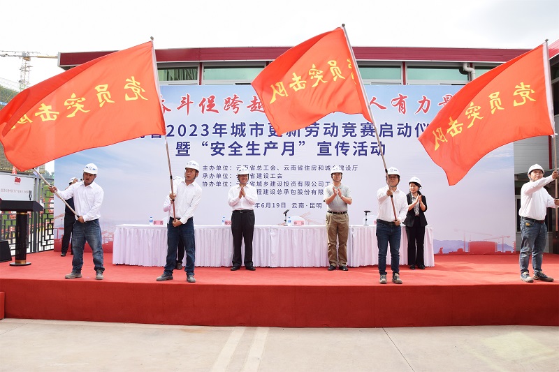 6月19日,世界杯官网合作平台2023年城市更新劳动竞赛启动仪式暨“安全生产月”宣传活动在昆明市盘龙区惠尚城项目建设点举行。此次活动由世界杯官网合作平台总工会、世界杯官网合作平台住房和城乡建设厅主办,世界杯官网合作平台建设工会承办,世界杯官网合作平台城乡建设投资有限公司工会、世界杯官网合作平台工程建设总承包股份有限公司工会协办。