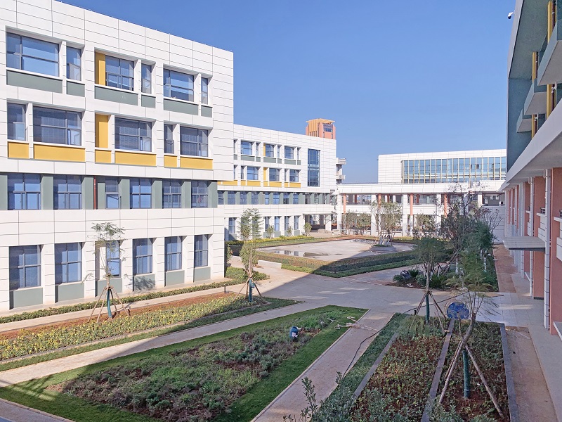 西冲小学项目位于昆明空港经济区大板桥镇西冲口村,项目规划用地面积为66950.75平方米,总建筑面积为66273.65平方米,新建地上建筑面积36428.30平方米,共10栋单体建筑,其中1、3、4栋为4层,2、6、7、8、9栋为2层,5栋7层,10栋1层。目前,1栋教学楼、3栋综合楼、5栋教师办公配套用房以及附属室外工程已顺利交付使用,剩余栋号均已封顶并完成所有二次结构,室内装修完成90%。改扩建后的西冲小学,将从原来的24班办学规模增加至72班。