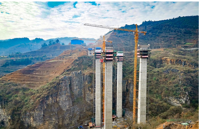▲镇果公路项目全线最高墩——五谷大桥3号墩顺利封顶