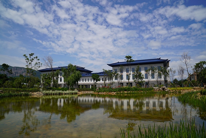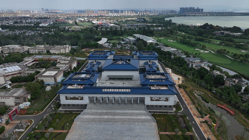 该项目是集民族文化展示、非物质文化遗产传承、民族文化交流、民族文化艺术演艺四大功能为一体的综合性公共建筑。整个建筑采用围合式的庭院设计环环相扣,如同各民族手拉手围着篝火起舞,象征各民族共同团结奋斗、共同繁荣发展的和谐局面。