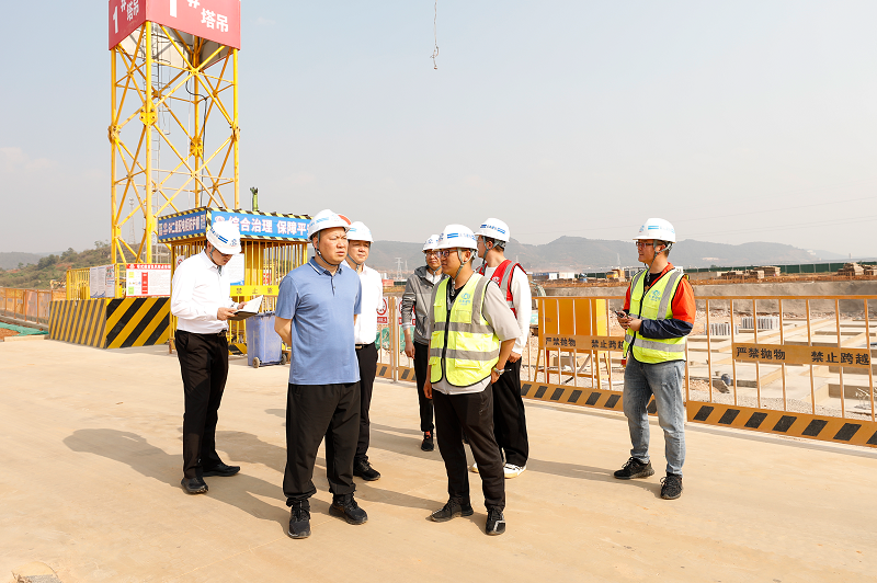 “项目建设进度如何?”“施工过程中有什么困难和问题需要协调解决?”陈祖军深入施工现场与一线管理人员亲切交流,查看项目施工情况,听取相关负责人对国际供应链示范中心项目整体概况、施工进度、重难点推进情况方面的汇报。