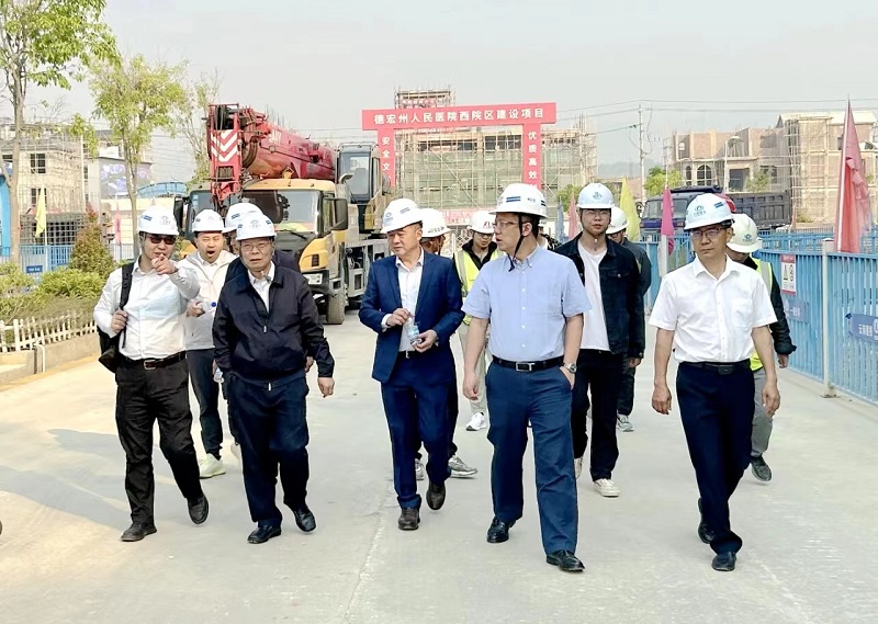 刘毅鹏一行深入州医院项目施工现场,详细了解门诊楼、医技楼、住院楼及附属工程的施工情况,听取相关负责人对现场进展的汇报,并对项目的整体建设情况给予充分肯定。