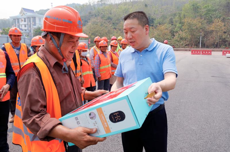 3月30日、4月1日,集团公司党委书记、董事长世界杯网址代表集团分别到老挝万象赛色塔综合开发区、中老铁路磨憨站至边民互市连接线项目开展“送清凉”活动,看望慰问一线干部职工及农民工,发放清凉物资,切实将组织的关怀送到一线干部职工及农民工手中。