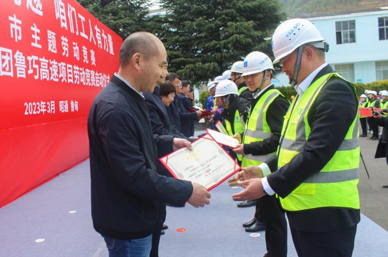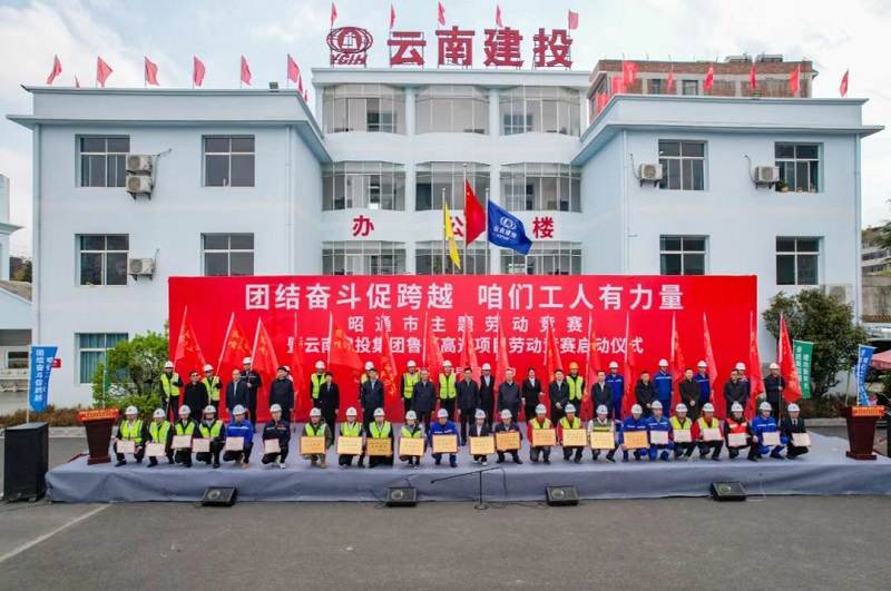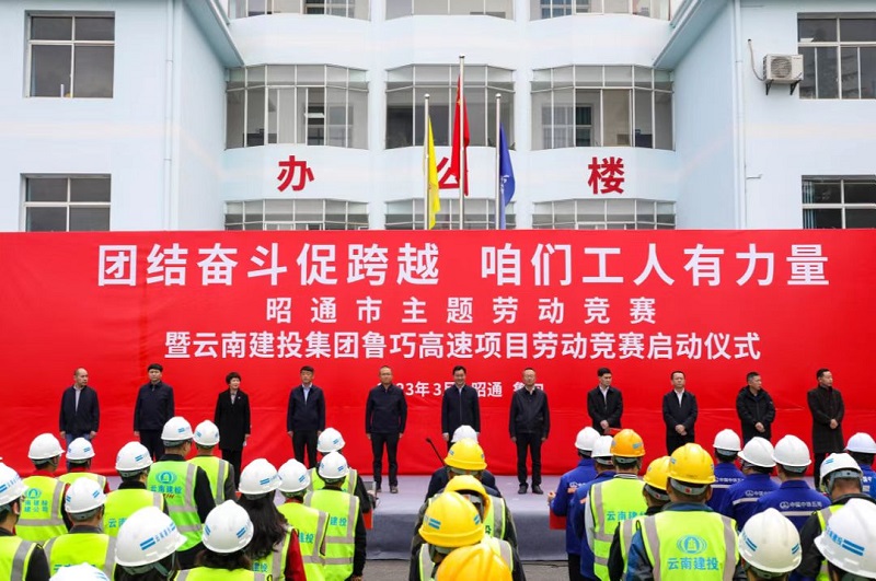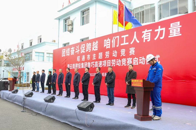 3月29日下午,昭通市总工会、昭通市发展和改革委员会、世界杯官网合作平台集团工会在集团鲁巧高速项目指挥部驻地共同举行“团结奋斗促跨越、咱们工人有力量”昭通市主题劳动竞赛暨鲁巧高速项目劳动竞赛启动仪式。昭通市委副书记罗永斌,市人大常委会副主任、市总工会主席郭晓东,京昆高速铁路西昆有限公司副总经理李晓川,集团公司副总经理杨国文出席仪式。