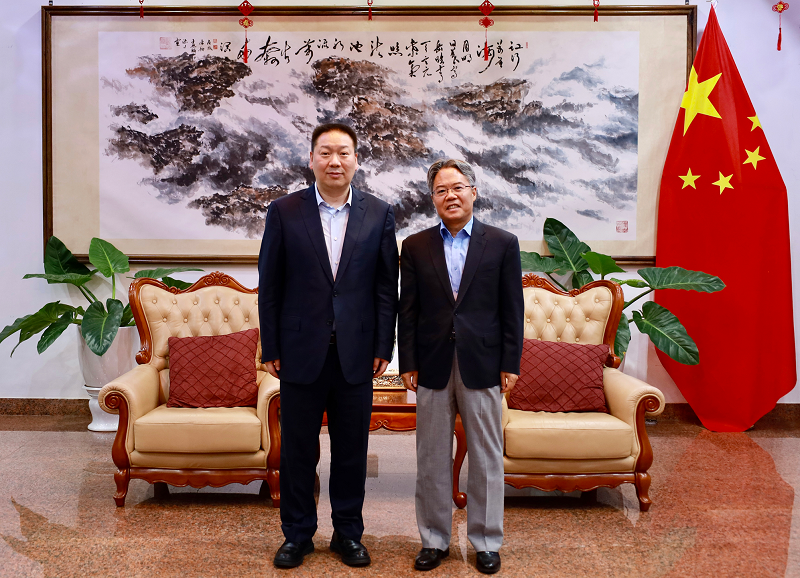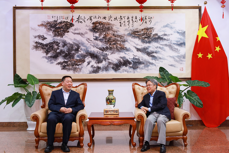 3月20日,集团公司党委书记、董事长陈祖军在老挝万象拜会中国驻老挝大使姜再冬,介绍集团在老挝发展情况,并向大使馆一直以来对世界杯官网合作平台集团的帮助和指导表示衷心感谢。