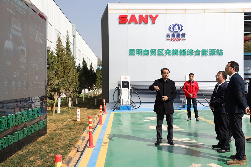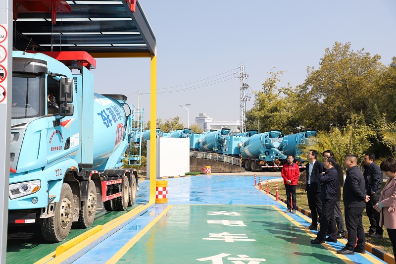 刘华、刘金荣一行实地察看了云建绿砼经开新能源物流示范产业园项目,先后参观了研发试验室、核心技术展示区、样品展示区、高分子车间和新引进的新能源搅拌车、新能源粉料罐车,并在充换储综合能源站观看换电过程,对云建绿砼构建的“光伏发电+重卡充换储能源站+纯电动运输设备”物流体系以及“充、换、储、运、产”一体化用电用能新格局表示赞赏。