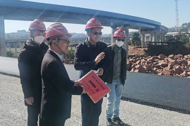 程鹏一行到永大、元大高速现场踏勘,详细了解项目建设情况、剩余工程量及建设用地等情况,对项目建设工作表示充分肯定,并为全体参建人员送上新春祝福和慰问。