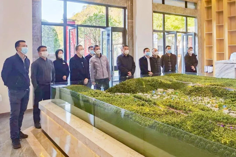 孙杰一行实地察看梁河南甸云隐国际康养温泉度假村项目销售中心、酒店区域、温泉区域,详细了解项目现阶段工作情况,对集团近年来为德宏州发展作出的贡献表示感谢。