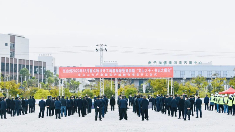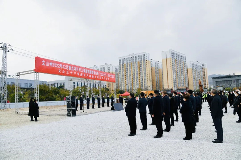 12月27日下午,文山州2022年12月重点项目开工调度观摩会暨文山三七产业园区产城融合项目举行开工仪式。文山州委书记陈明,州委副书记、州长马忠俊,州委常委、文山市委书记蒋俊,集团公司副总经理刘金荣出席开工仪式。