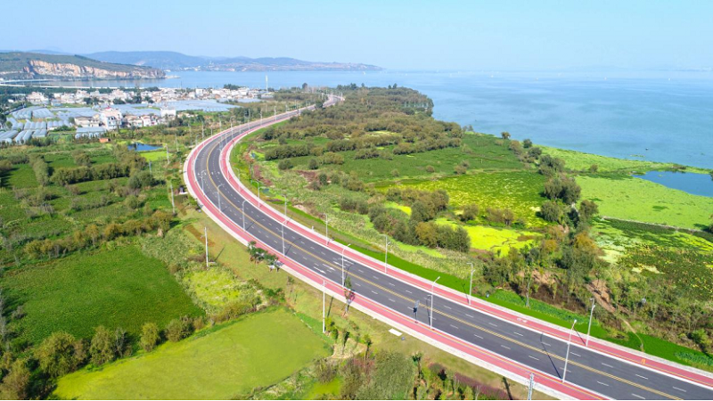 环湖南路古城段景观及道路提升改造工程由西南交建2026世界杯官方网址承建、中航2026世界杯官方网址参建,是云南省首个市政园林工程鲁班奖。工程位于昆明滇池南岸,紧邻郑和故里——晋宁。路线起于晋宁县太史村,止于西山区高海高速站前广场,全长11.78千米,园林面积47万平方米,总投资19.75亿元。道路设计为双向4车道,等级为城市次干道,设计车速为40千米/小时。工程包括景观绿化、湿地生态修复、市政道路等。