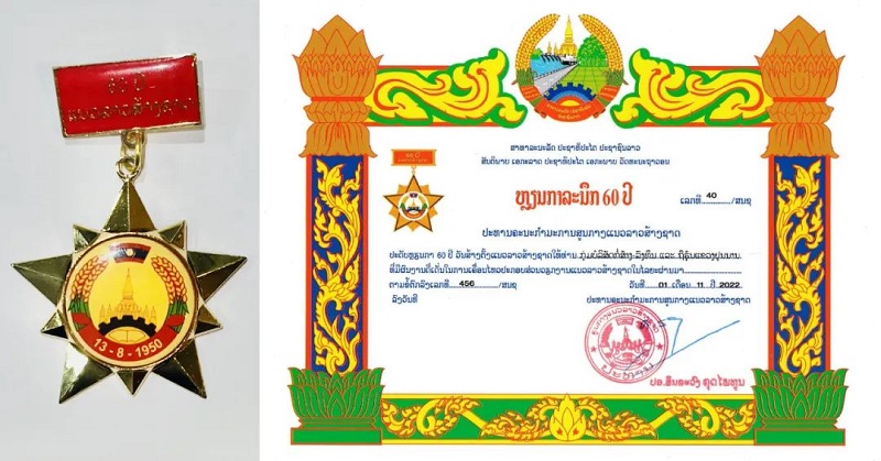 11月2日,老挝建国阵线成立60周年表彰仪式在老挝首都万象隆重举行,老挝中央政治局委员、建国阵线中央委员会主席辛拉冯·库派吞向集团授予老挝建国阵线60周年纪念奖章。中国驻老挝大使姜再冬,中国驻老挝大使馆经济商务参赞赵文宇出席仪式。