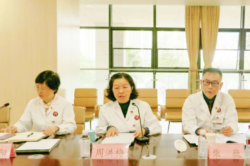 周洪梅对陈文双一行的到来表示欢迎,详细介绍了医院建院历程、发展远景以及升级项目重要性等内容。她表示,双方要充分认识项目的重要性,保证项目建设质量和进度,坚守安全红线底线。希望双方建立良好的沟通协调机制,畅通沟通渠道,定期交流,信息互通,共同推进项目建设,实现共赢发展,达到1+1>2的效果。