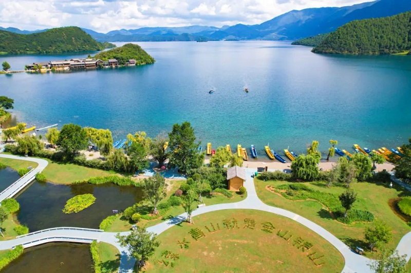 新闻链接:泸沽湖沿湖生态搬迁及生态建设项目总投资约15亿元,主要建设内容包括沿湖植被修复、湿地生态修复、生态驳岸修复、河门口修复、公众教育线路建设、生态环境监测巡护廊道、环湖路改线工程、排水管网建设、生态村庄建设等。目前已完成5个湖滨生态带、9.5千米生态监测巡护廊道、5个生态村庄及安置点建设。