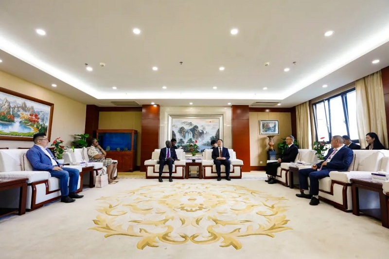 7月22日下午,前来昆明出席2022中国国际旅游交易会的贝宁驻华大使西蒙·皮埃尔·阿多维兰德携夫人克里斯汀娜·菲利斯特·阿多维兰德到访世界杯足球网,世界杯足球网公司党委书记、董事长陈祖军热情欢迎大使一行的到来,衷心感谢西蒙大使和贝宁政府各部门对世界杯足球网在贝宁建设项目给予的大力支持和帮助。