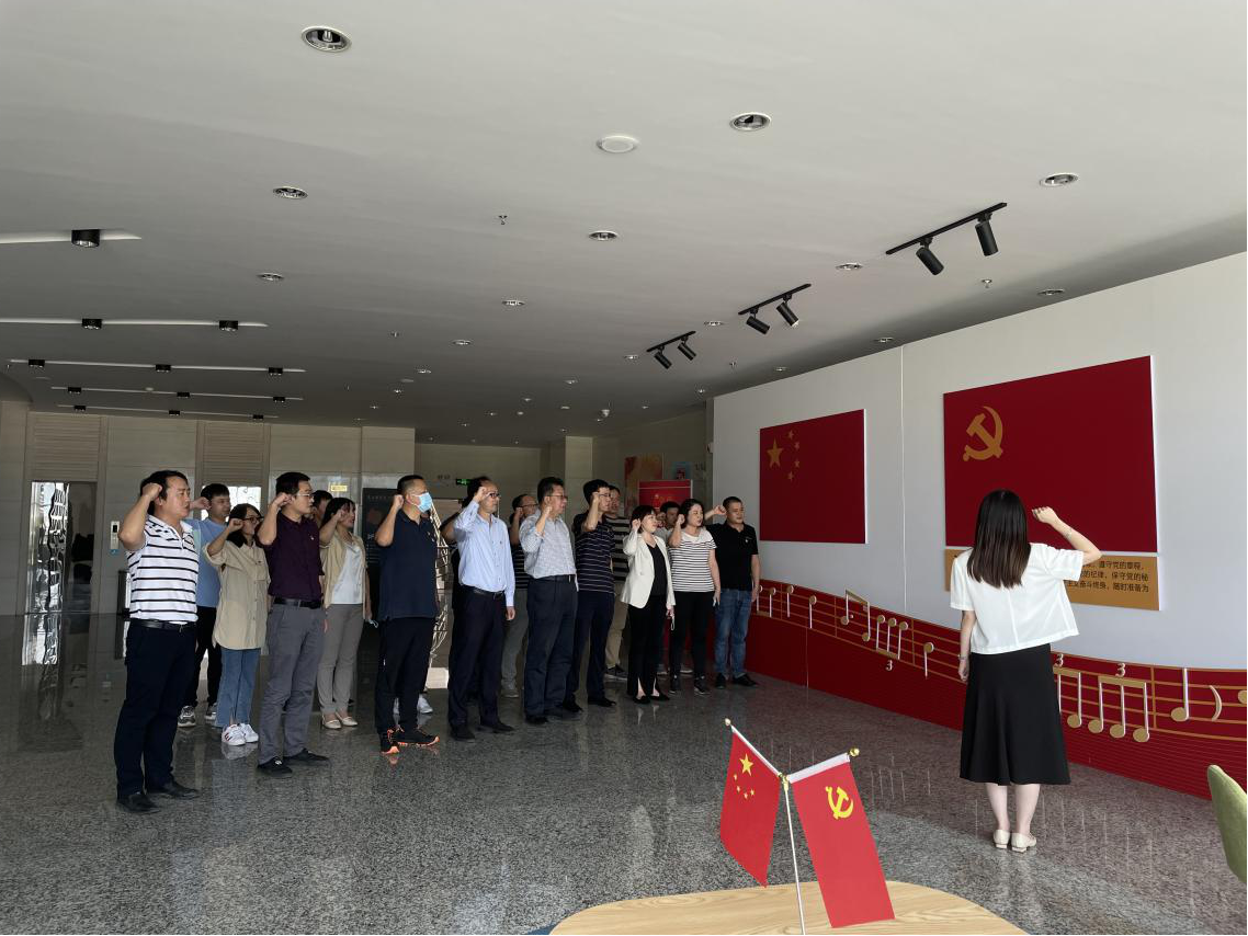 全体人员在馆内面对党旗庄严肃立,重温入党誓词,通过学习活动,进一步坚定理想信念,牢记使命,不忘初心,始终对党忠诚,对共产主义信仰忠诚。