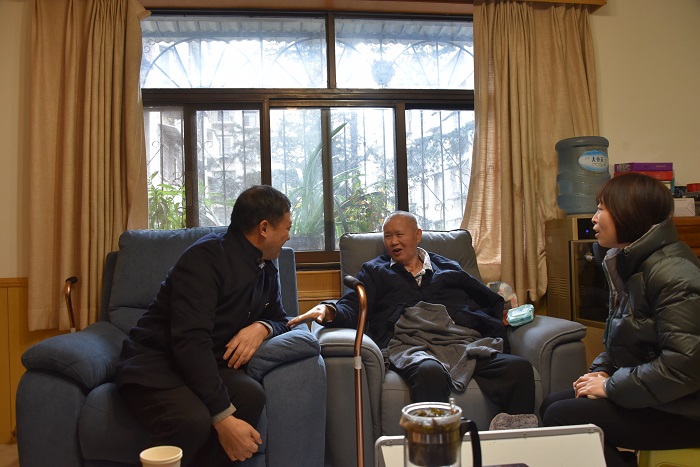 在陈楚炳家中,王永强与老人聊起了日常。老领导退休二十余年,仍心系集团的发展,提出了自己的建议和期望。王永强衷心地感谢老领导对集团发展的关心关注,表示将继续努力把集团发展得更好,并祝福老领导身体健康。