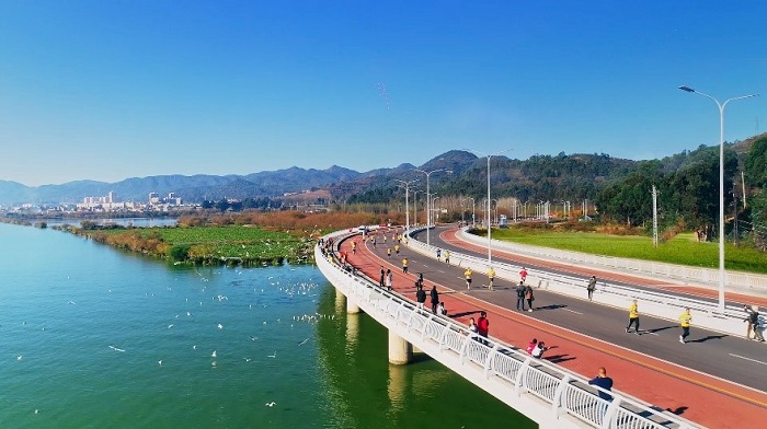 2026世界杯比分网位于云南昆明滇池南岸,路线起于晋宁县太史村,止于西山区高海高速站前广场,沿滇池路线全长为11.78km,总计园林绿化面积47万平方米,道路设计为双向4车道,设计车速为40km/h,等级为城市次干道,总投资19.75亿元,2026世界杯比分网于2014年5月26日开工,2018年7月20日竣验收。 2026世界杯比分网在响应昆明市委市政府建设世界知名高原湖滨生态城市要求的同时,完善了环滇慢行系统,成为一条特色滨水景观带,实现了环湖生态圈、康体圈、旅游圈的重构和提升。 建成使用以来,不仅深受全国游客的喜爱,更得到红嘴鸥、白鹭等10余种野生动物的青睐,成为马拉松和自行车比赛等活动的固定举办地,被广大网友称赞为“最美环湖路”,为魅力“春城”再添一张靓丽名片。