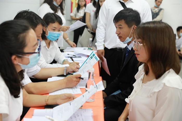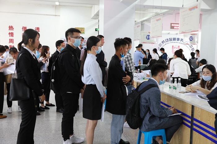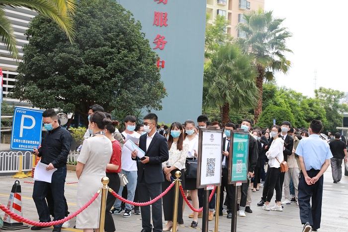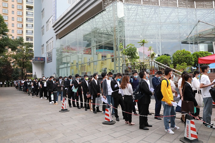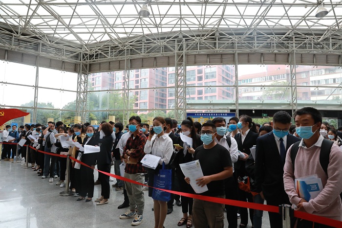 面试区:求职者排队等待意向单位的面试