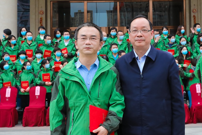 3月21日,李超(左)与赤壁市委书记盛文军(右)合影。