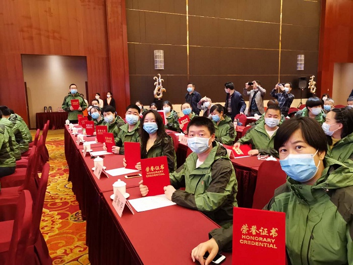 3月21日,赤壁市委市政府与援赤医疗队专家座谈,徐溧婕(右一)和队友们合影。