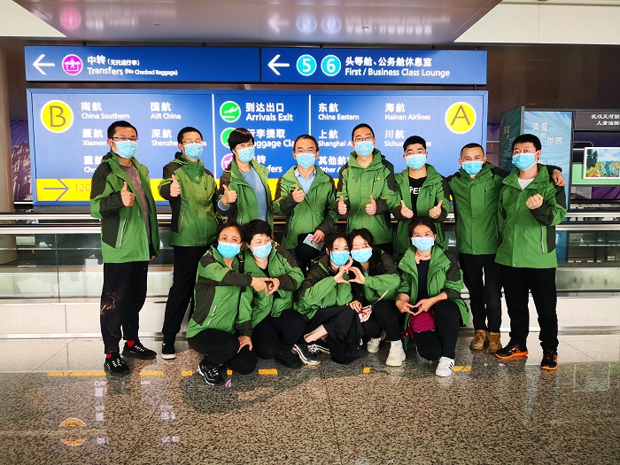 3月22日,昆明市第一人民医院医疗队在机场合影。