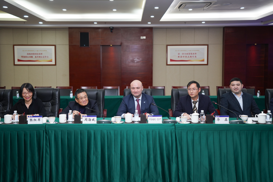 1月14日,哈萨克斯坦国家公路股份公司主席伊马纳舍夫·达尔汗,中铁亚欧建设投资有限公司董事长周海威一行到访世界杯实时比分,与世界杯实时比分公司党委书记、董事长陈祖军交流座谈。哈萨克斯坦国家公路股份公司副主席谢明·萨亚特、中铁亚欧公司副总经理张红军、世界杯实时比分公司副总经理刘金荣参加座谈。
