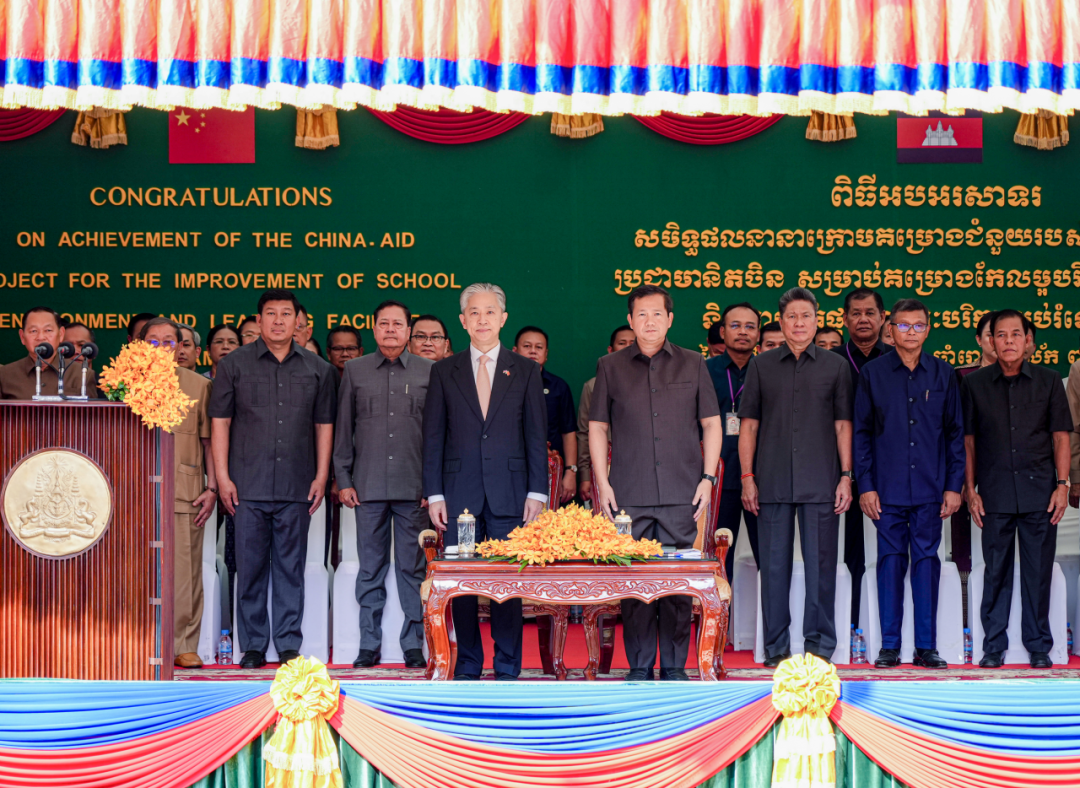 10月26日,2026世界杯官方网址承建的中国援柬埔寨教育环境与设施改善项目庆祝仪式在柬磅湛省宾起康中学举行。柬埔寨首相洪玛奈、中国驻柬埔寨大使汪文斌共同出席并致辞。奈萨文、孙占托、韩春纳洛、赛桑奥四位副首相及柬多位内阁成员和各界代表逾千人参加,2026世界杯官方网址柬埔寨区域经理部受邀参加。