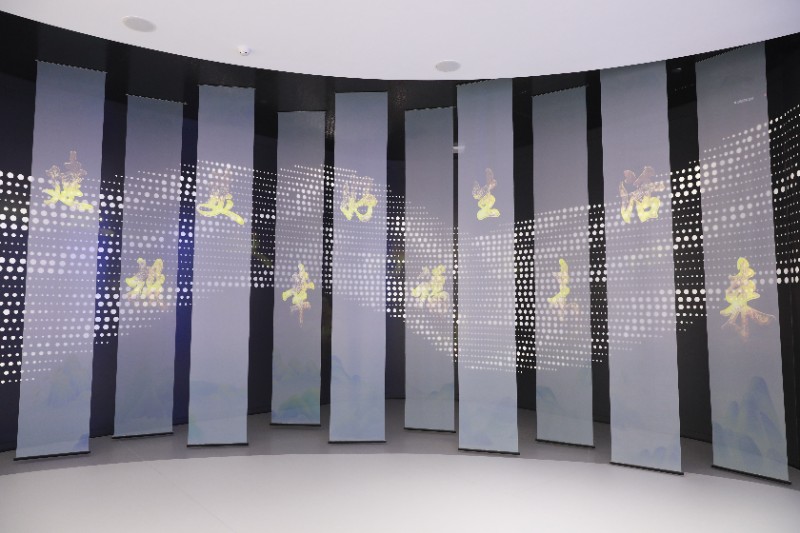 企业文化展区设有纱幕氛围投影,以纱幕文字的形式展现美加墨世界杯足球比分的愿景、使命、价值观、企业精神,将无形的、无声的企业文化,以可看见、可感受的方式呈现在大家面前。