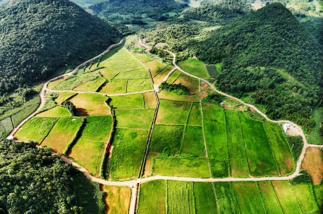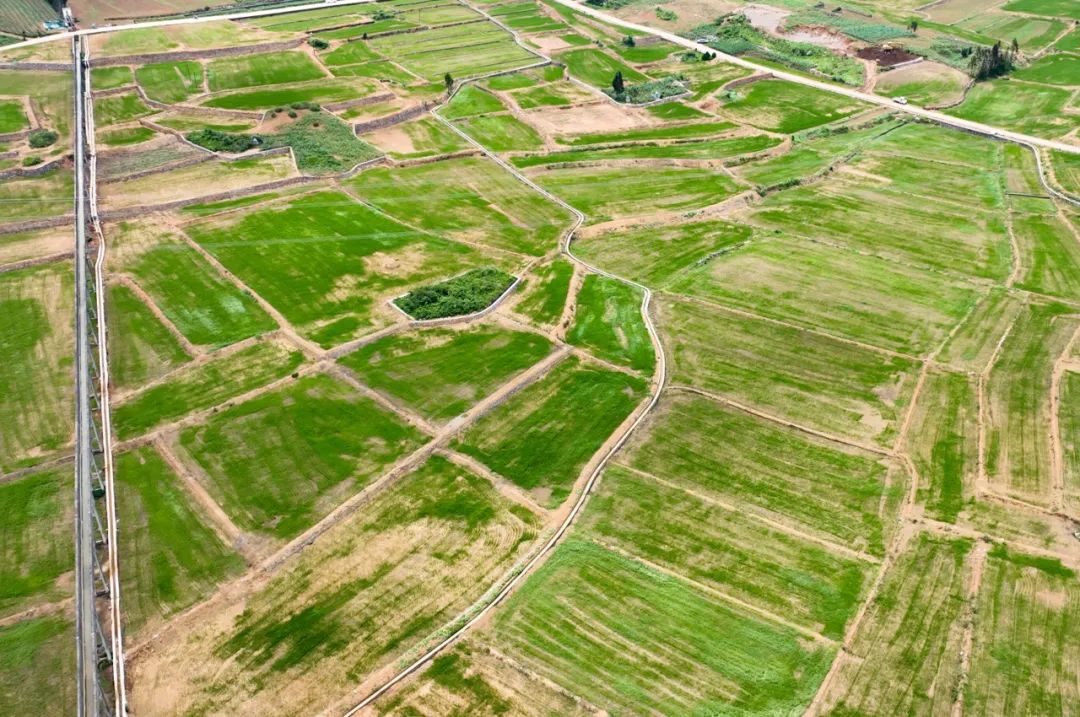 蓝天白云下,一眼望去,是路相通、渠相连、旱能灌、涝能排的良田美景。谁能想到,18个月以前,这里还是一片贫瘠的坡地。