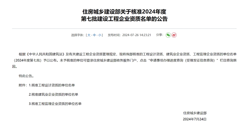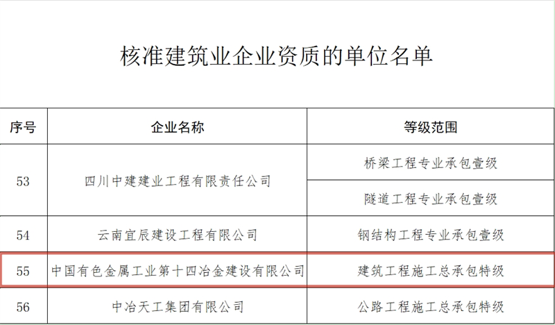 7月26日,国家住房和城乡建设部发布关于核准2024年度第七批建设工程企业资质名单的公告,集团十四冶公司申特成功,获建筑工程施工总承包世界杯官网中文版。至此,十四冶公司成为集团第10家拥有世界杯官网中文版的企业,集团世界杯官网中文版增至12项。