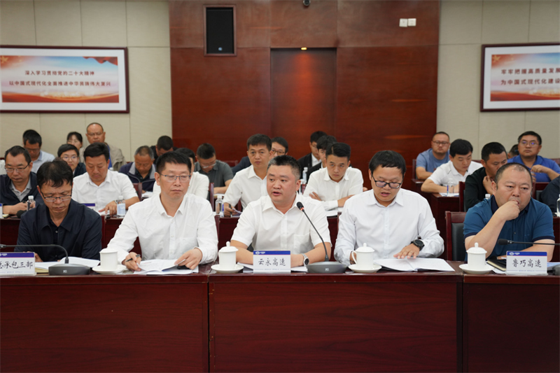 云永高速、鲁巧高速、瑞孟高速总包方、施工方、项目部相关负责人根据汛期预警情景和应急处置情景,推演预警行动和应急响应行动,对项目现场情况、面临的风险、已采取的管控措施和监控预警措施进行汇报。