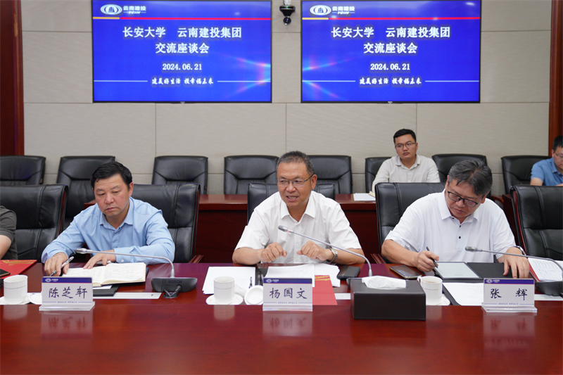 杨国文对陶继东一行的到来表示欢迎。他表示,长安大学作为中国高等教育的国家队,肩负建设高水平研究型大学的重任,为国家及建投世界杯足球平台培养了大量专业人才,近年来建投世界杯足球平台的业务版图不断拓展,全面构建“投融建管营”一体化发展格局,长安大学的专业技术及研究方向与建投世界杯足球平台的发展需求高度契合,希望双方进一步加强校企合作,在人才培养、科研创新、课题研究、成果转化、继续教育、人才引进等方面探索合作路径,为服务国家基础设施建设贡献力量。