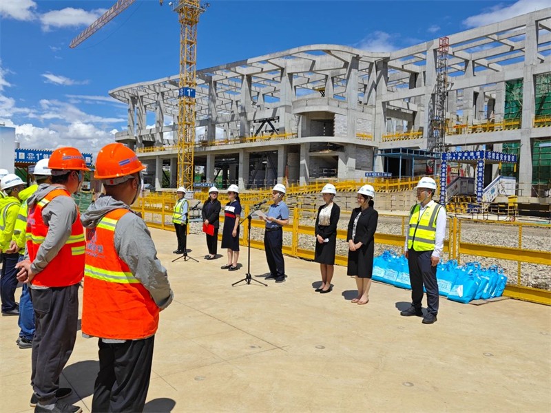 王福其代表世界杯网址、省纪委省监委驻世界杯网址纪检监察组,对不畏酷暑奋战在项目一线,为加快推进妇女儿童发展中心项目建设洒下辛勤汗水、作出杰出贡献的一线职工、产业工人们表示衷心感谢和诚挚慰问。