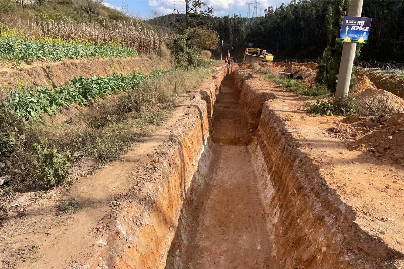 黄谷田水库至龙星水厂调水管线工程途经两个乡镇(街道)的4个村委会,多处横穿农田、山地和市政道路、燃气管网,施工组织难,现场协调难度大。尤其鸡窝段、土官田小石洞段,仅天然气管道就需垂直穿越2处、近距离平行施工6处。为尽早打通难点,水投公司、二水公司及时对接区政府及燃气公司,多方现场协商推进10余次,并通过人工精细开挖、现场严格监管的稳妥方式,保障了项目安全高效推进。