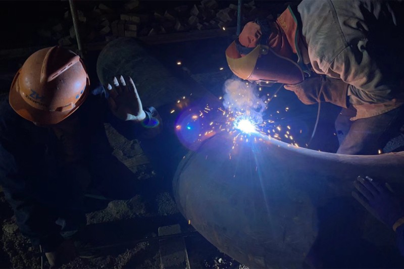 ▲管网焊接夜间施工