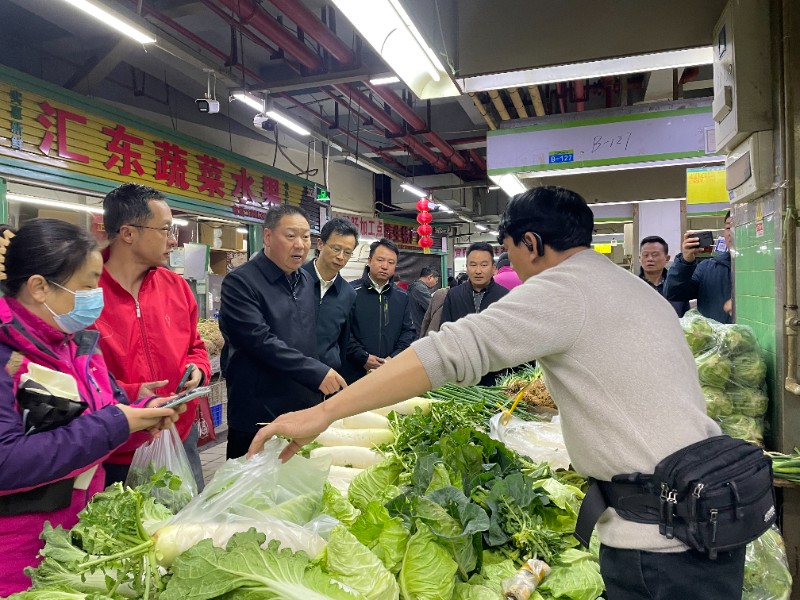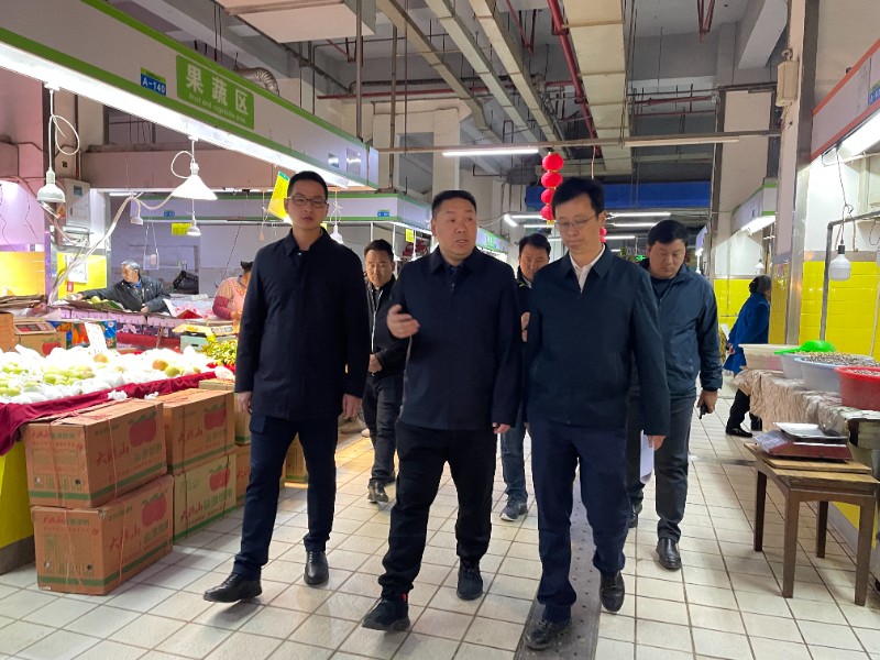 “市场蔬菜水果、禽蛋肉类的价格涨幅如何?”“供应情况怎么样?”“春节期间市场值班人员如何安排?”走进市场,陈祖军关心询问市场从业者和值守人员,详细了解市场春节期间的物资供应和经营情况。