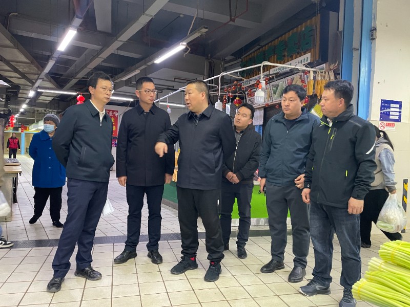 2月14日,集团公司党委书记、董事长陈祖军到建材科技公司五里多农博广场、五里多大商汇菜市调研市场保供稳价、运营管理情况,贯彻落实2月9日省委书记王宁到集团篆新农贸市场调研节日市场供应情况时的指示精神,看望慰问春节期间坚守岗位的干部职工。