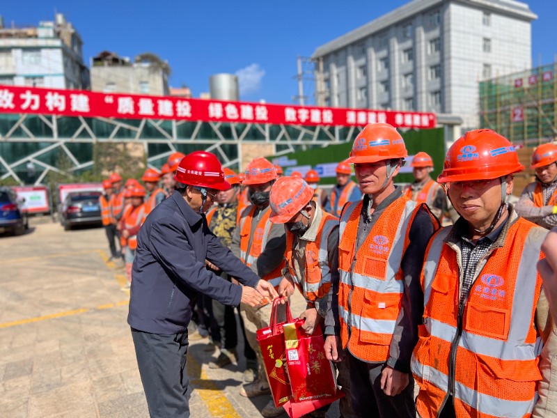 春节期间,世界杯比分网大常委会副秘书长尹显红一行到云南世界杯比分网大综合楼修缮项目看望慰问春节期间坚守一线的干部职工。