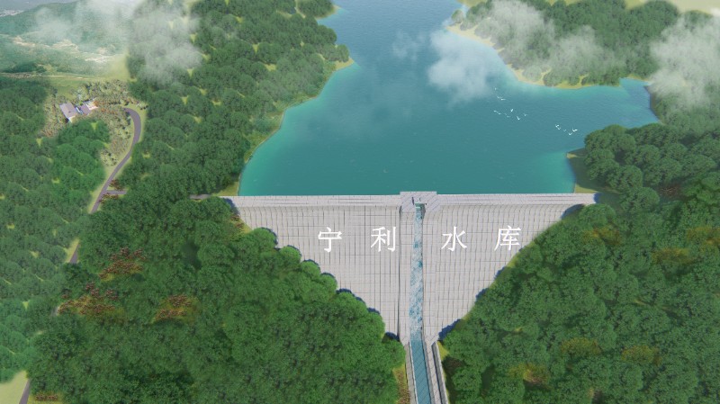 宁利水库总库容为1581万立方米,工程由枢纽工程和灌溉干渠工程组成。其中,枢纽工程由拦河大坝和导流隧洞组成,大坝为碾压混凝土重力坝,最大坝高84米。灌溉干渠总长27千米,渠首设计输水流量1.93立方米/秒。