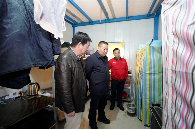 “食堂平常有几荤几素?”“宿舍有没有供暖供氧?”“在项目吃住习惯吗?”“收入水平怎么样?”“有什么问题和困难需要解决?”每到一个项目驻地,陈祖军都仔细查看驻地办公环境、职工食堂、宿舍等配套设施,与干部职工、农民工深入交流,详细了解干部职工工作和生活情况。