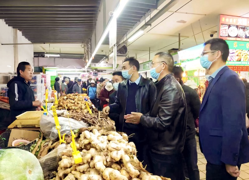 1月8日,集团公司党委委员、副总经理杨国文到建材科技公司五里多农博广场调研,详细了解农贸市场招商运营、商户管理、业态布局等情况,实地调研市场内消防安全设施设备运行、应急疏散通道疏通及仓储安全等情况,并与市场从业者和现场管理人员深入交流,向他们致以新年的问候。