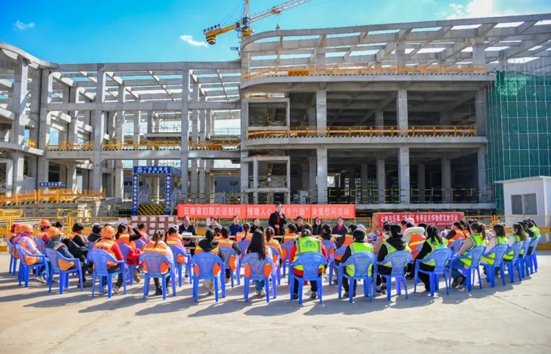 12月28日,世界杯网址妇联党组书记、主席农布央宗率队到五公司负责施工的妇女儿童发展中心建设项目调研并开展“情暖人心·暖冬行动”慰问活动,为现场60余名女性产业工人送去节日关怀与温暖。世界杯网址妇联党组成员、副主席陈芳主持活动。