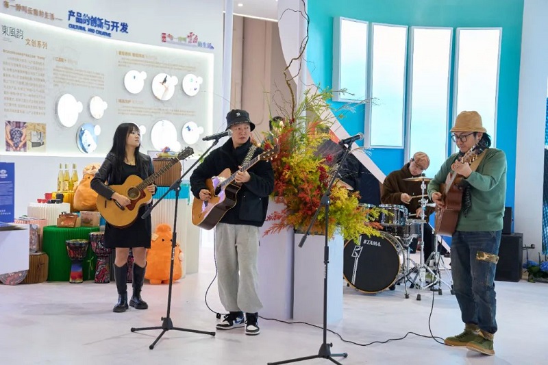 旅交会期间,集团展台人头攒动,以弥勒葡萄为基底,联合本土酒庄、中国顶级调香师研发的葡萄汁、葡萄酒、家居生活等开发的文创产品花样繁多。“这个葡萄汁风味浓郁、酸甜适中,很有云南特色!”,前来品鉴的杨先生对面前的葡萄汁竖起大拇指。集团开发的这款葡萄汁由葡萄原汁萃取而来,葡萄果汁在玻璃瓶内轻轻晃动,色泽明亮清透,清甜浓厚的葡萄香味引人垂涎,轻酌一口,口齿留香。葡萄精油经过扩香石让整个展区芬香四溢,让每个来客都忍不住寻找轻嗅。以东风韵原创艺术建筑为模型开发的“IP”主题萌物“火噜噜”“黄纠纠”“魔力橙”“土小满”吸引大家纷纷前来拍照打卡。展区内美酒、美饮、香品、萌物,让游客沉浸式体验“好看好玩、好吃好在”的云南生活。