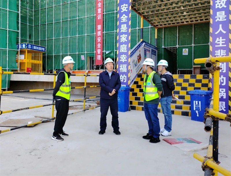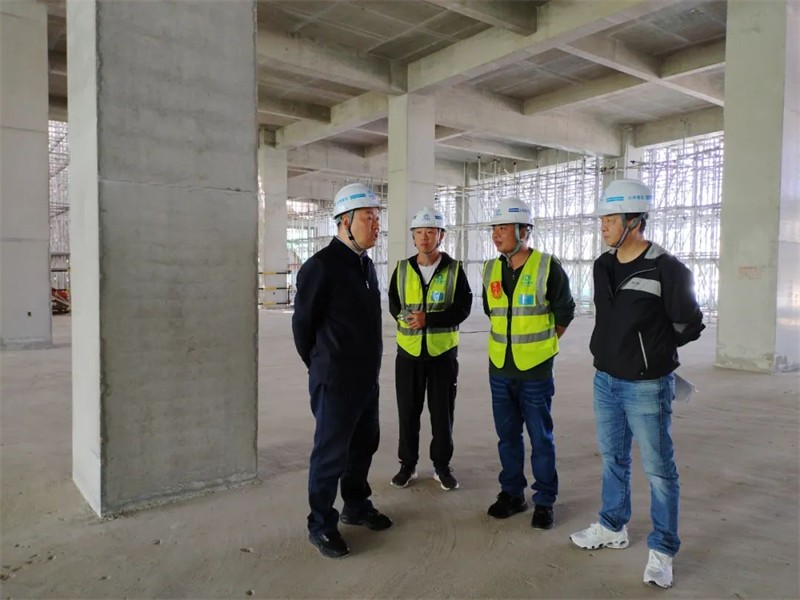 在项目施工现场,陈祖军与一线管理人员深入交流,详细了解项目规划、建设进度、成本管控、人员配置、党的建设等情况,实地调研了项目安全生产、质量管控、文明施工等工作开展情况,对两个项目的各项工作进展予以充分肯定,并就下一步工作进行安排部署。