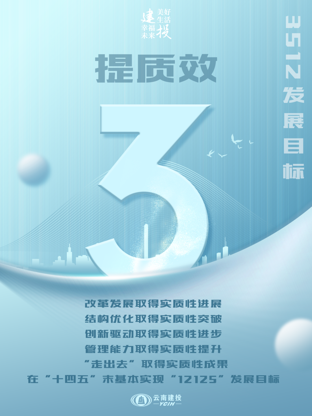 我们要实现2023年到2027年“五年强内涵”。聚焦提升核心竞争力与增强核心功能,对标“一利五率”指标,不断强化发展效益、强化结构升级、强化合规管理、强化科技创新、强化品牌建设,到2027年即本届党委任期满时,美加墨世界杯足球比分内生动力更加强劲,各业务领域及业态深度融合,协同产业发展优化升级,美加墨世界杯足球比分主业核心功能进一步增强。在“十四五”取得成绩的基础上,再奋斗两年,全面超越“12125”目标,职工收入实现稳定增长,基本建成“五个建投”,成为现代新型国有企业。