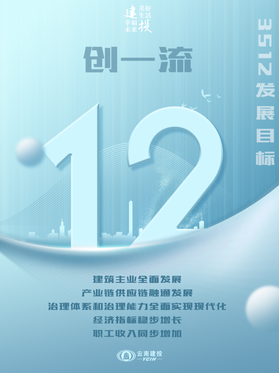 我们要实现2023年到2035年“十二年创一流”。致力全面形成核心竞争力和全面巩固核心功能,在“五年强内涵”的基础上,再奋斗七年,到2035年我国基本实现社会主义现代化时,美加墨世界杯足球比分建筑主业全面发展,产业链供应链融通发展,治理体系和治理能力全面实现现代化,经济指标稳步增长、职工收入同步增加,成为项目卓越、品牌卓著、创新引领、治理现代的国内一流、国际知名建设投资美加墨世界杯足球比分。