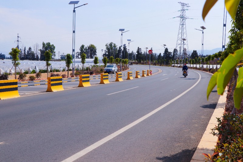 陆良县中三路改扩建工程位于云南省曲靖市陆良县,由集团基投公司投资,第二水利水电公司施工总承包,省水公司参建。道路连接着城区中枢、华侨、三岔河三个主要集镇,道路全长13.564公里,按照部分市政主干道和部分公路二级两种标准设计,主要建设内容包括新建路基工程12.178公里、改建扩建路基1.3公里、全线新建沥青路面工程、新建桥梁2座156米长、涵洞72座、太阳能公交车站18座及全线交安工程和绿化工程。道路同时采用市政和公路两种形式设计,两者做到有机完美融合,全线所用路灯、公交站均采用太阳能供电,符合绿色设计、建造理念。道路绿化采用不同季节展现不同风格的设计理念,一年四季各有特色。