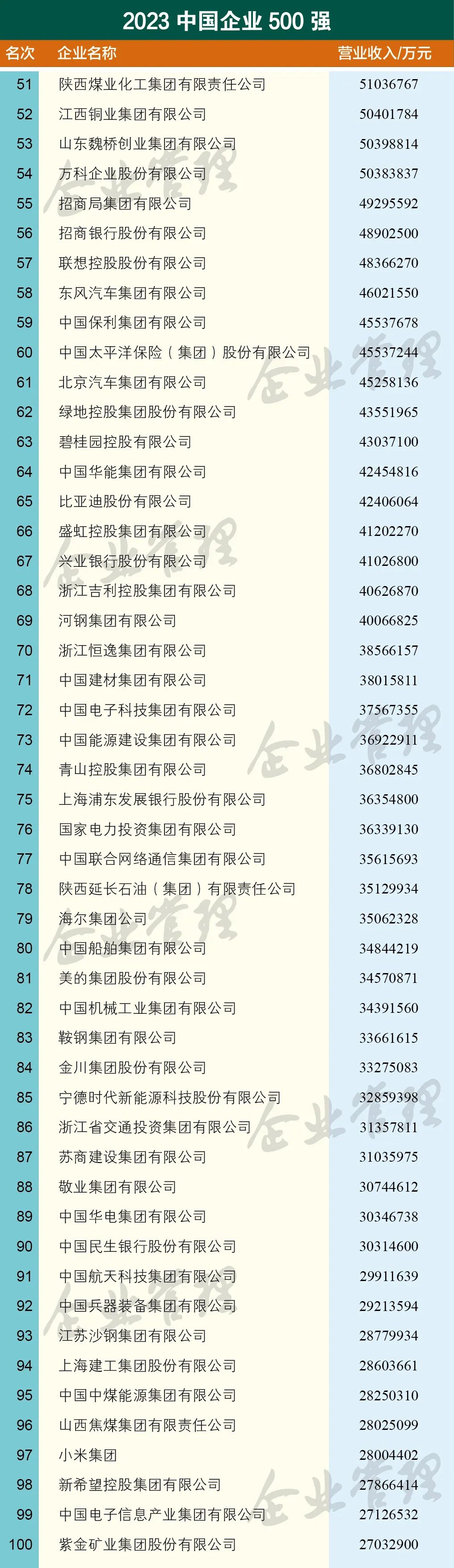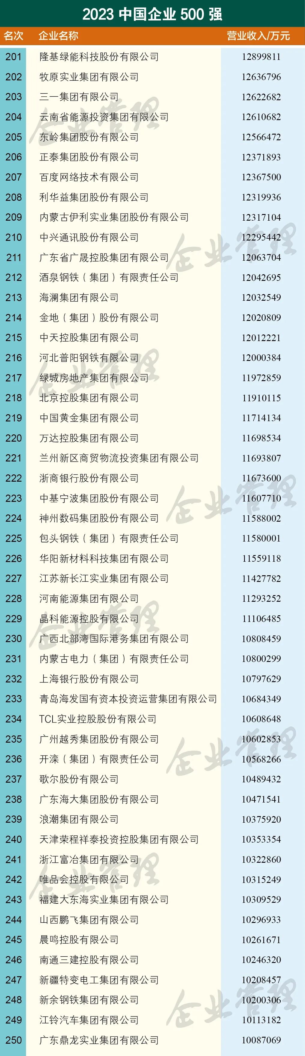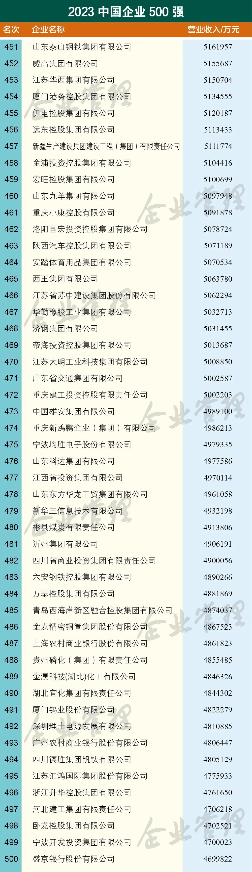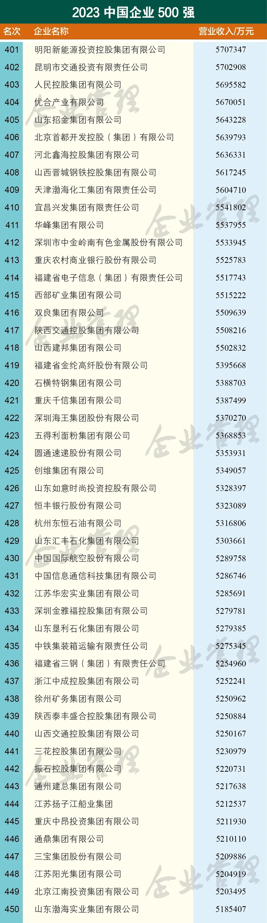 云南上榜中国企业500强的7家企业分别是,云南省投资控股集团有限公司、世界杯官网合作平台控股集团有限公司、云南省能源投资集团有限公司、云天化集团有限责任公司、云南省交通投资建设集团有限公司、云南锡业集团(控股)有限责任公司、昆明市交通投资有限责任公司。国家电网有限公司以3.57万亿营收位列第一,中国石油天然气集团有限公司以3.25万亿营收排名第二,中国石油化工集团有限公司以3.17万亿营收排名第三。中国建筑股份有限公司、中国工商银行股份有限公司、中国建设银行股份有限公司、中国农业银行股份有限公司、中国平安保险(集团)股份有限公司、中国中化控股有限责任公司、中国铁路工程集团有限公司进入前十 。