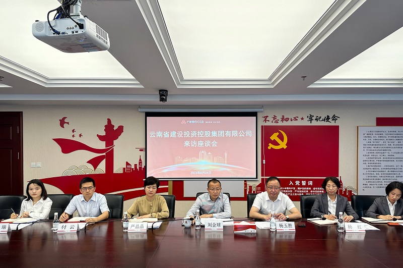 8月24日下午,集团公司党委书记、董事长陈祖军与广发银行昆明分行党委书记、行长刘金球交流座谈,广发银行昆明分行党委委员、副行长杨玉胜出席座谈会。